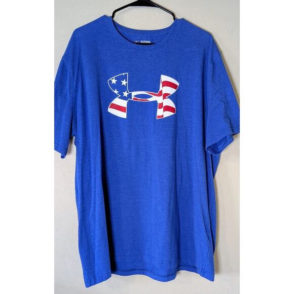 Men's under armor patriotic t-shirt, men's under armor red white and blue short sleeve t-shirt size 2XL