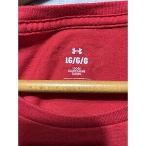 The product is an Under Armour men's Wisconsin Badgers basketball short sleeve T-shirt in red, size large. It features the official team logo and colors, making it a perfect choice for fans of the team. The shirt is designed for athletic performance, with the Under Armour brand known for its high-quality and comfortable sportswear. This shirt is a must-have for any Wisconsin Badgers basketball enthusiast looking to show their team pride in style.