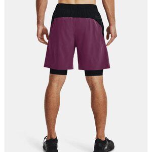 Under Armour Mens Woven 2-in-1 7'' Shorts 1373235 582 Purple Black Size L Large