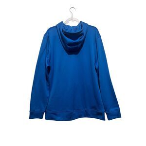 Men’s Under Armour ColdGear hoodie in a vibrant blue, size XL. Designed with a loose, relaxed fit for comfort and warmth. Features a large silver Under Armour logo across the chest, adjustable drawstring hood, and a front kangaroo pocket. Soft fleece interior provides insulation without bulk—great for workouts, outdoor training, or everyday wear. Chest measures 25" across, length 30", sleeve length 26". Preowned and in excellent condition.
