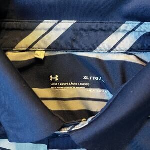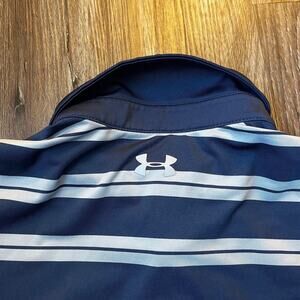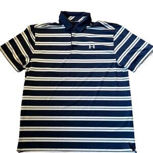 Under Armour men's size XL loose fit navy and white striped polo shirt. In excellent condition from a smoke free home.