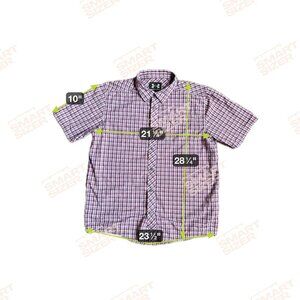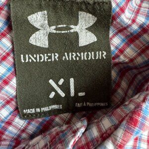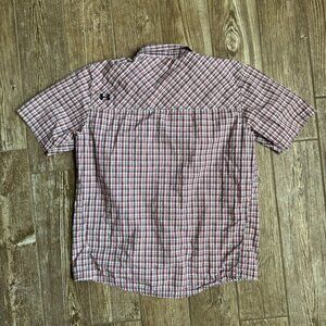 Under Armour Mens XL Plaid Button Up Short Sleeve Shirt Cotton Blend Red Blue