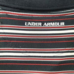 Under Armour Mens XL Striped Polo Shirt Black Red Performance Golf Apparel