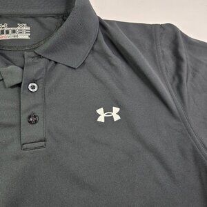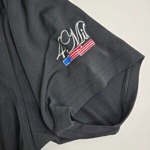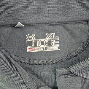 This is a black Under Armour Heat Gear polo. It is a men's loose XL and has the Wounded Warrior Project logo stitched on the right side. The right side has stitching that reads "4 Mil" and has a stripe that is similar to the American Flag. (Blue on the left, goes into five stripes that alternate red and white.) There are minor snags on the front side towards the bottom of the shirt. Only worn a few times. See photos for additional wear details.