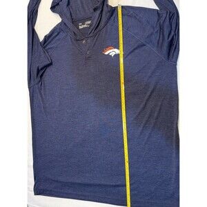 The product is an authentic Under Armour NFL Denver Broncos Combine hoodie in blue, size 2XL. This officially licensed hoodie features the team's logo and colors, making it a must-have for any Denver Broncos fan. Made for men, this hoodie is perfect for showing support for your favorite football team during the Combine event or any NFL game. Made in Indonesia, this high-quality hoodie is a great addition to any sports apparel collection.