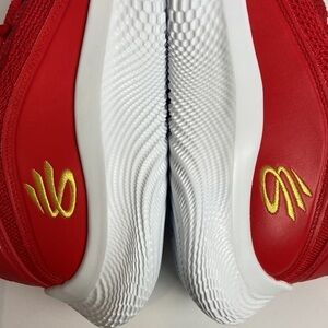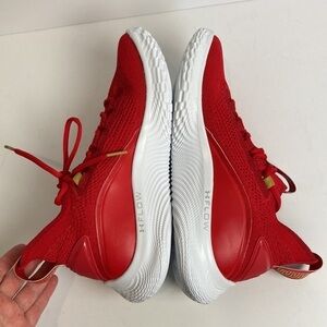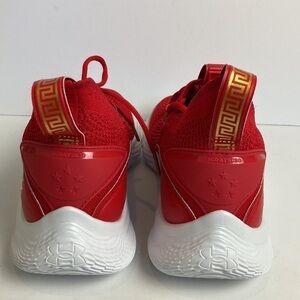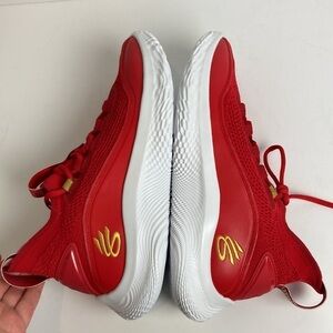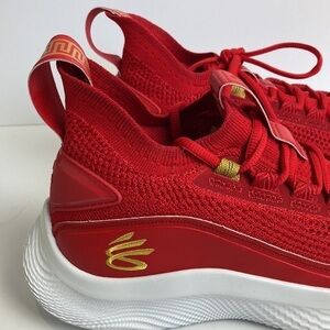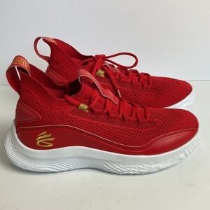 Under Armour Curry 8 CNY Limited Edition Chinese New Year Size 9.5 Women, 8 Men. New Without Box. “Details The Curry Flow 8 ‘Chinese New Year’ kicks off the year of the ox with a traditional color scheme in keeping with the lunar holiday. Steph Curry’s eighth signature shoe features a saturated crimson hue through a breathable knit textile upper, its snug socklike construction fortified with tonal synthetic leather overlays and an external heel counter.” Curry Basketball Shoes