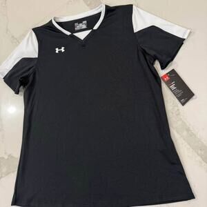 Under Armour NWT Athletic Heat Gear Soccer Jersey Women's Large Loose Fit Black