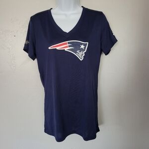 Under Armour NWT Small Navy Blue Short Sleeve T-shirt NFL Patriots V-neck Footba