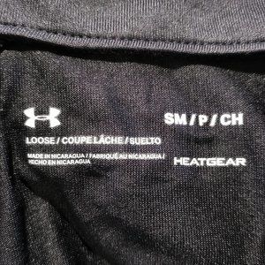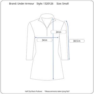 Pullover style with half zip closure, stand collar, and raglan long sleeves. Loose, relaxed fit. Moisture wicking stretchy fabric is soft, lightweight, quick drying, and odor resistant. HeatGear technology keeps you cool. Under Armour logo on left chest and at back of neck.