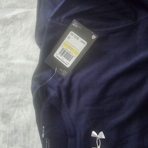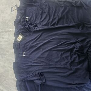 Navy blue athletic tee with Under Armour logo. Perfect for workouts.