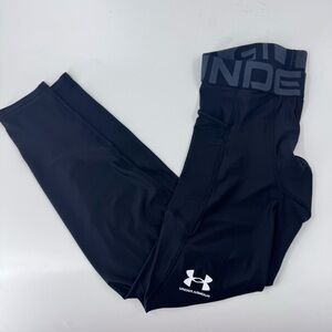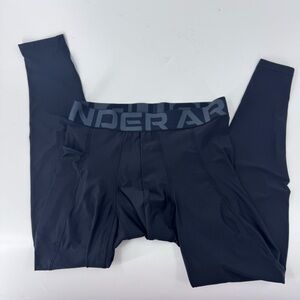 Navy compression tights with bold logo waistband. Sleek and supportive design.