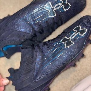 Navy Football Cleats with teal accents. Ideal for active lifestyle.