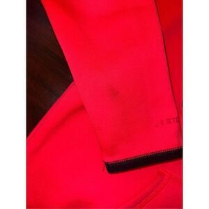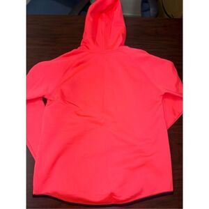 Neon pink colored. Has some staining on one sleeve. Sizing tag is cut out but fits like a small. Armpit to armpit laid flat measures about 20 inches. From top of shoulder to bottom laid flat measures about 22.5-24.5 inches.