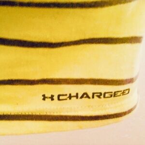 Under Armour Women’s Heat Gear Loose Fit Charged Neon Yellow and Gray Striped Racerback Tank Top
