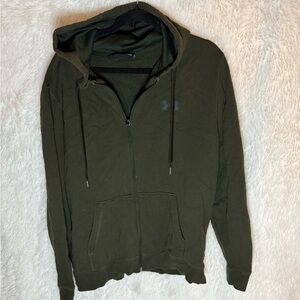 Olive green jacket with full zip. Soft fleece interior. Under Armour logo on label.
