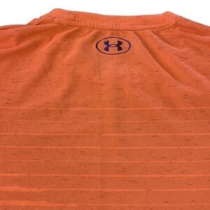 Under Armour Orange Black Short Sleeve Crew Neck Activewear Shirt Size L. Excellent condition. Due to variations in light some of the photos may look a slightly different in color. The second photo is the most accurate representation.