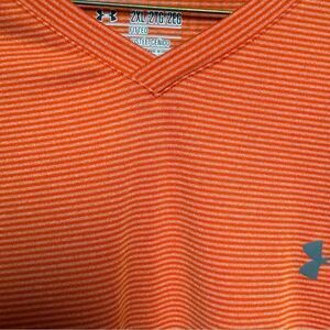 Under Armour Orange Long sleeve shirt Men’s size 2XL stripes v neck
