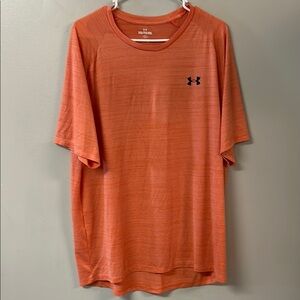 Experience ultimate comfort and style with this Under Armour short sleeve tee in a vibrant orange hue. Designed for athletic performance, it features a classic crew neckline and a relaxed fit, making it perfect for workouts or casual outings. The shirt's textured fabric enhances breathability and showcases the iconic Under Armour logo on the chest.