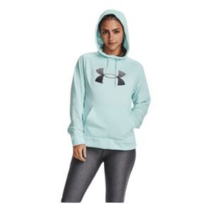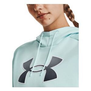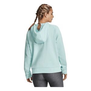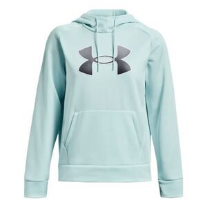 Under Armour Original Performance Fleece Hoodie Sweatshirt in Mint Green with a Gray Logo. It's Lightweight, Breathable and has just the right amount of stretch for warmth that still lets you move. Soft inner layer traps heat to keep you warm & comfortable. It has a Front Kangaroo Pocket, it is Long Sleeve and a Pull-Over Style