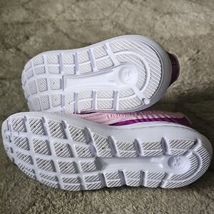Experience the perfect blend of style and comfort with Under Armour's pink sneakers. These low-top sneakers feature a soft pink fabric upper and a clean, minimalist design. The white soles and matching pink laces add a touch of elegance, making them ideal for casual outings. Enjoy the lightweight feel and casual athletic style that Under Armour is known for.