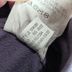Ribbed waistband with external drawcord. Some wear at the ends of the cords, see photo.