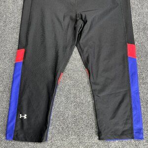 Under Armour Pants Womens Large Compression Black Blue Heat Gear Crop Pull On