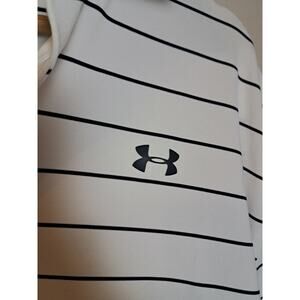 Under Armour Payoff Polo Golf Collared Shirt White Black Stripes 2XL