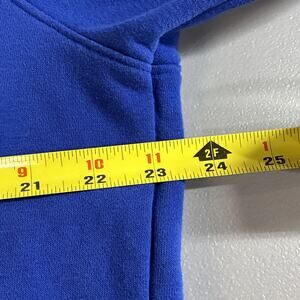 Under Armour Pepsi Sweatshirt Men’s Large Blue Fleece Loose ColdGear Pullover. There is a small black dot on the bottom of front pocket. No other stains or tears. Measures 46" chest (23" pit to pit), 28" long (top collar to hem), and 24" sleeve length.