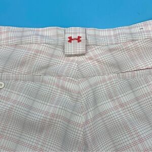 Under Armour Performance Golf Shorts Gray & White with Pink Accent Plaid Size 16
