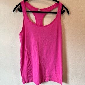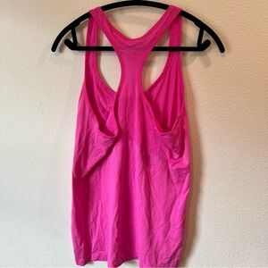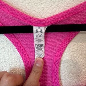This Under Armour tank top features a vibrant pink hue and a sleeveless design, ideal for athletic activities. The racerback style enhances freedom of movement, while the lightweight, stretchy fabric ensures comfort and breathability during workouts.