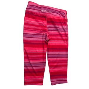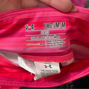 Gently worn girl's size medium under armour pink striped activewear tights. Elastic waistband, moisture wicking material. Comes from a smoke free home, bundle with other items to save and minimize shipping cost.