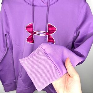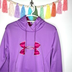 Title: Under Armour Pink and Purple Logo Hoodie Semi Fitted Cold Gear Hooded Sweatshirt Size Medium