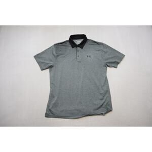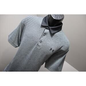 Under Armour Playoff Golf Polo Gray Black Athletic Golf Shirt Mens Size Large