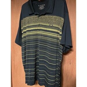 Under Armour Playoff Polo Shirt Short Sleeve Green Yellow Stripe Men’s 3XL Golf
