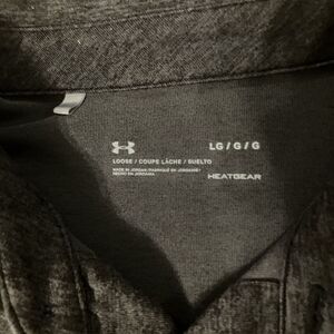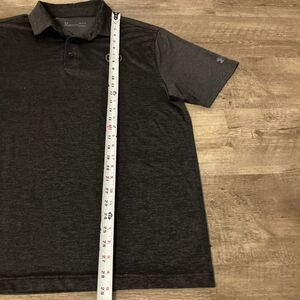 This Under Armour Polo in size Large features a heathered brown color with a collared neckline and short sleeves, suitable for all seasons. Made from a polyester blend material, this regular fit polo is part of the Under Armour HeatGear product line, designed for optimal performance during golf activities. The classic design is embellished with a logo, perfect for a sports-inspired look on the golf course or casual wear.