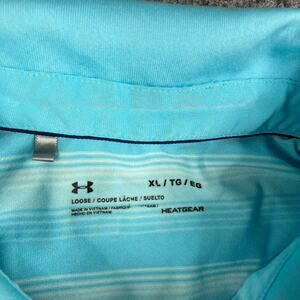 Under Armour Polo Mens Size XL Blue Striped HeatGear Loose Fit Golf Shirt