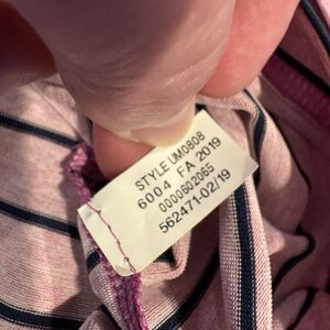 Under Armour Polo Shirt Medium Mens Purple Striped Phoenician Golf Logo Resort. This polo shirt is perfect for any active occasion, whether it's for travel, activewear, or casual outings. The shirt features a collared neckline with a spread collar style and a button closure. The shirt is made of knit fabric with a purple striped pattern and accents including the Under Armour logo and a Phoenician character.
