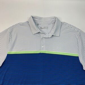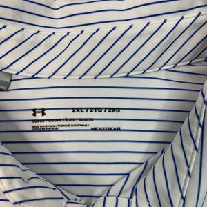 Under Armour Polo Shirt Men 2XL Prusslan White Striped Heatgear Performance Golf