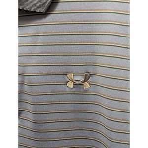 Under Armour Polo Shirt Mens 3XL Loose Blue Striped HeatGear Casual Golf Stretch