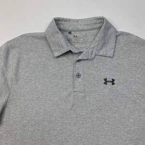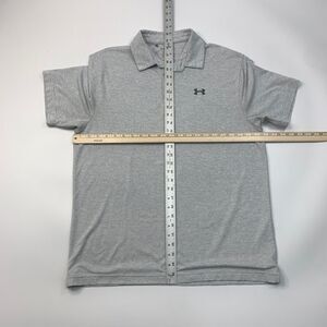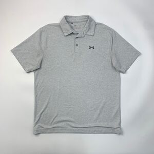 Under Armour Polo Shirt Mens L Large Grey White Heatgear Loose Fit Striped Golf