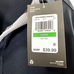 Under Armour Polo Shirt Mens Large Black Loose Collared Short Sleeve NWT