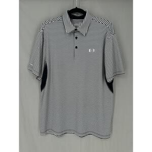 Under Armour Polo Shirt Mens Large Black White Striped Heat Gear Performance