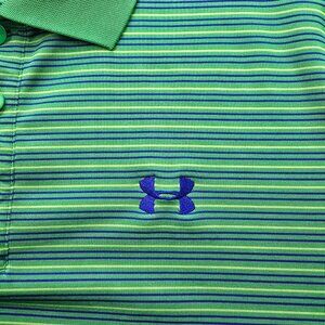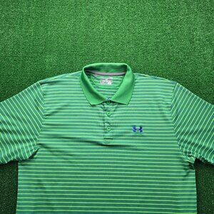 Under Armour Polo Shirt Mens Large Green Striped Golf Club Performance Heat Gear