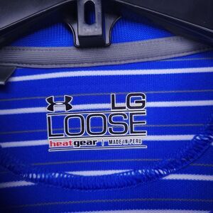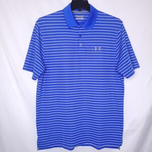 Under Armour Polo Shirt Mens Large Striped Blue White Performance Loose HeatGear