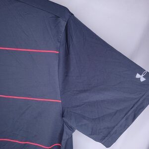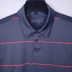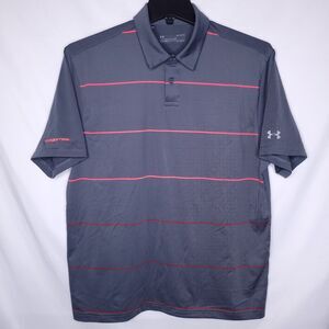 Under Armour Polo Shirt Mens Large Striped Gray HeatGear Loose UPF 4 Way Stretch