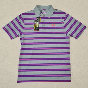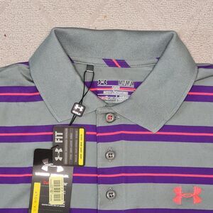 Under Armour Polo Shirt Men's MEDIUM Golf Loose Heatgear Stripe Activewear