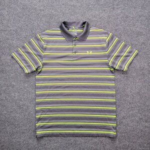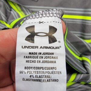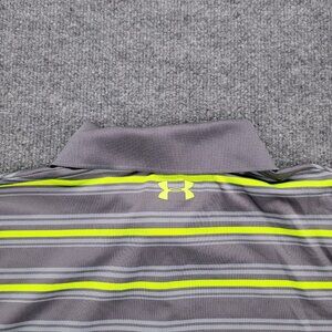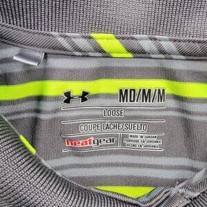 Under Armour Polo Shirt Mens Medium Gray Green Striped Golf Performance Casual