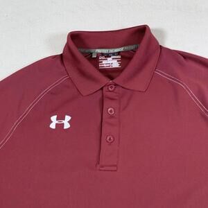Under Armour Polo Shirt Mens Medium Maroon Short Sleeve Loose Sports Protect UA