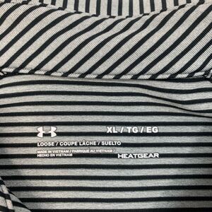 Under Armour Polo Shirt Mens XL Extra Large Grey Loose Heatgear Striped Golf