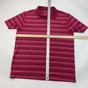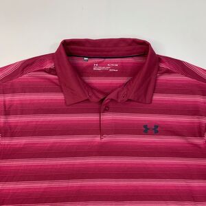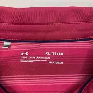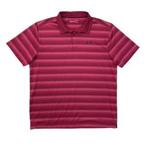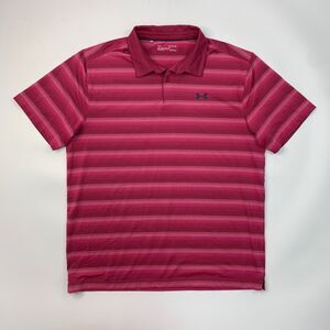 Under Armour Polo Shirt Mens XL Extra Large Pink Berry Heatgear Loose Striped